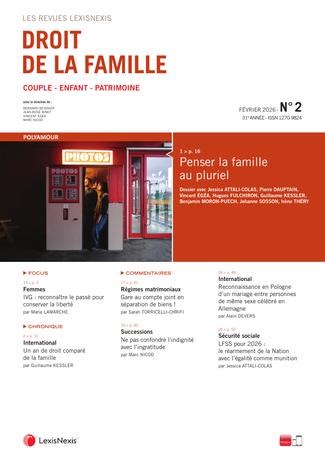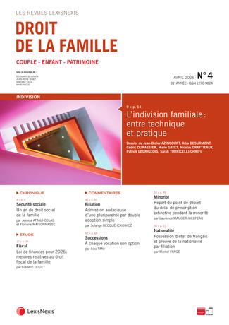 Les décisions les plus récentes dans ce domaine sont traitées à travers les rubriques suivantes : mariage, concubinage, pacte civil de solidarité, divorce, régimes matrimoniaux, successions-libéralités, adoption, filiation, autorité parentale, personnes protégées, en vous apportant l’éclairage du droit fiscal, du droit pénal et du droit international privé.