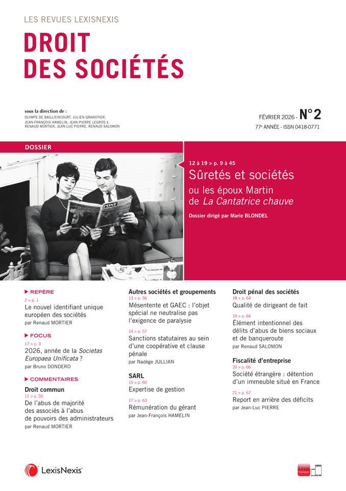 Le droit des sûretés et le droit des sociétés sont très connectés en pratique. En droit, c'est autre chose. Comme le colloque l'a montré, les dispositions qui régissent respectivement les deux...