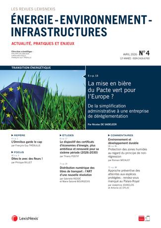 Issue de la fusion de la Revue de droit des transports et de la mobilité, Environnement et développement durable et Revue juridique de l’économie publique, la revue Énergie – Environnement - Infrastructures vous permet d’appréhender les informations juridiques clés dans ces trois domaines.