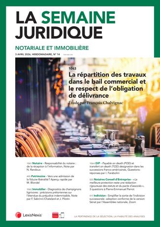 POINTS CLÉS ➜ À l’occasion du 121e Congrès des notaires de France, le numéro spécial de La Semaine juridique notariale et immobilière consacré aux propositions des Congrès des notaires devenues des...